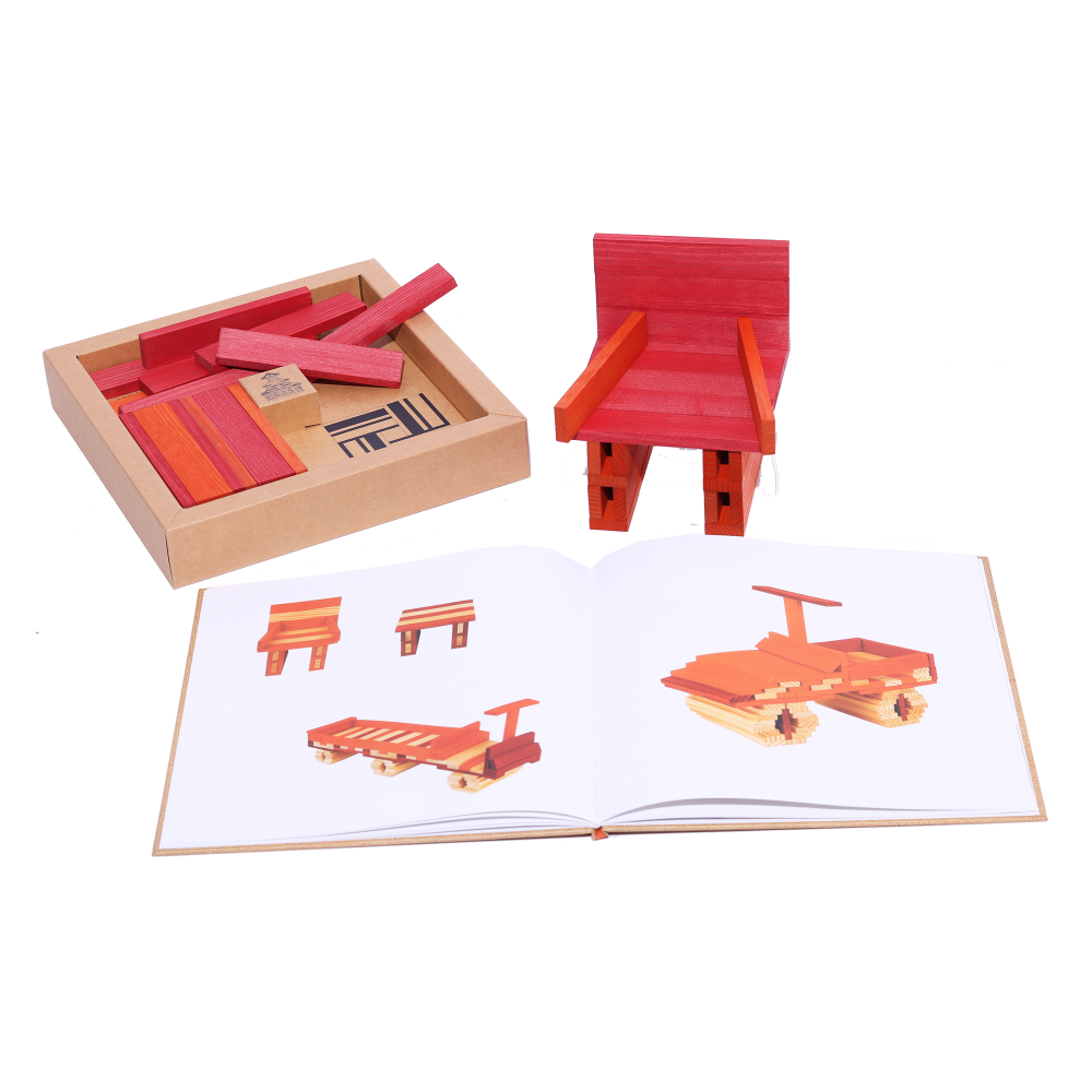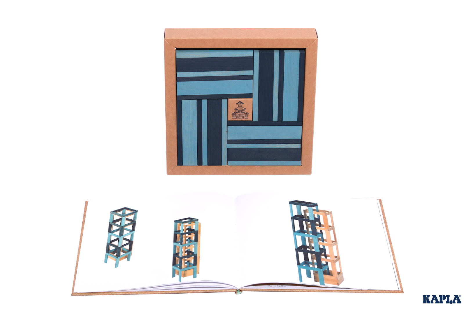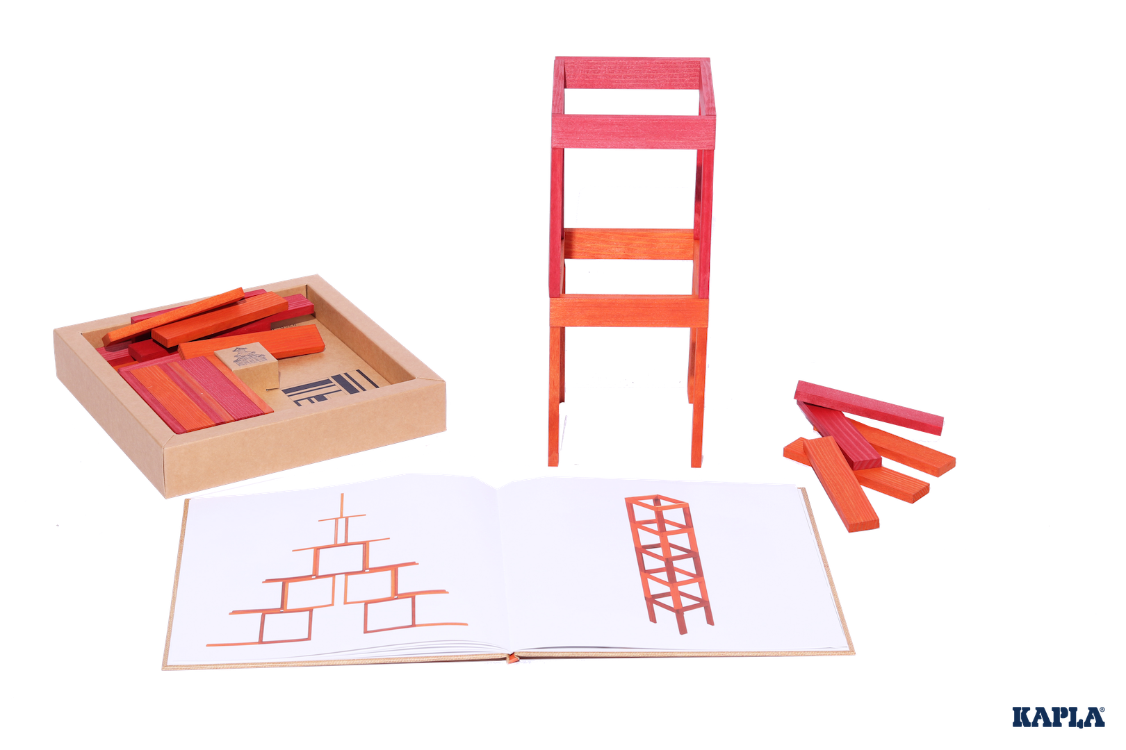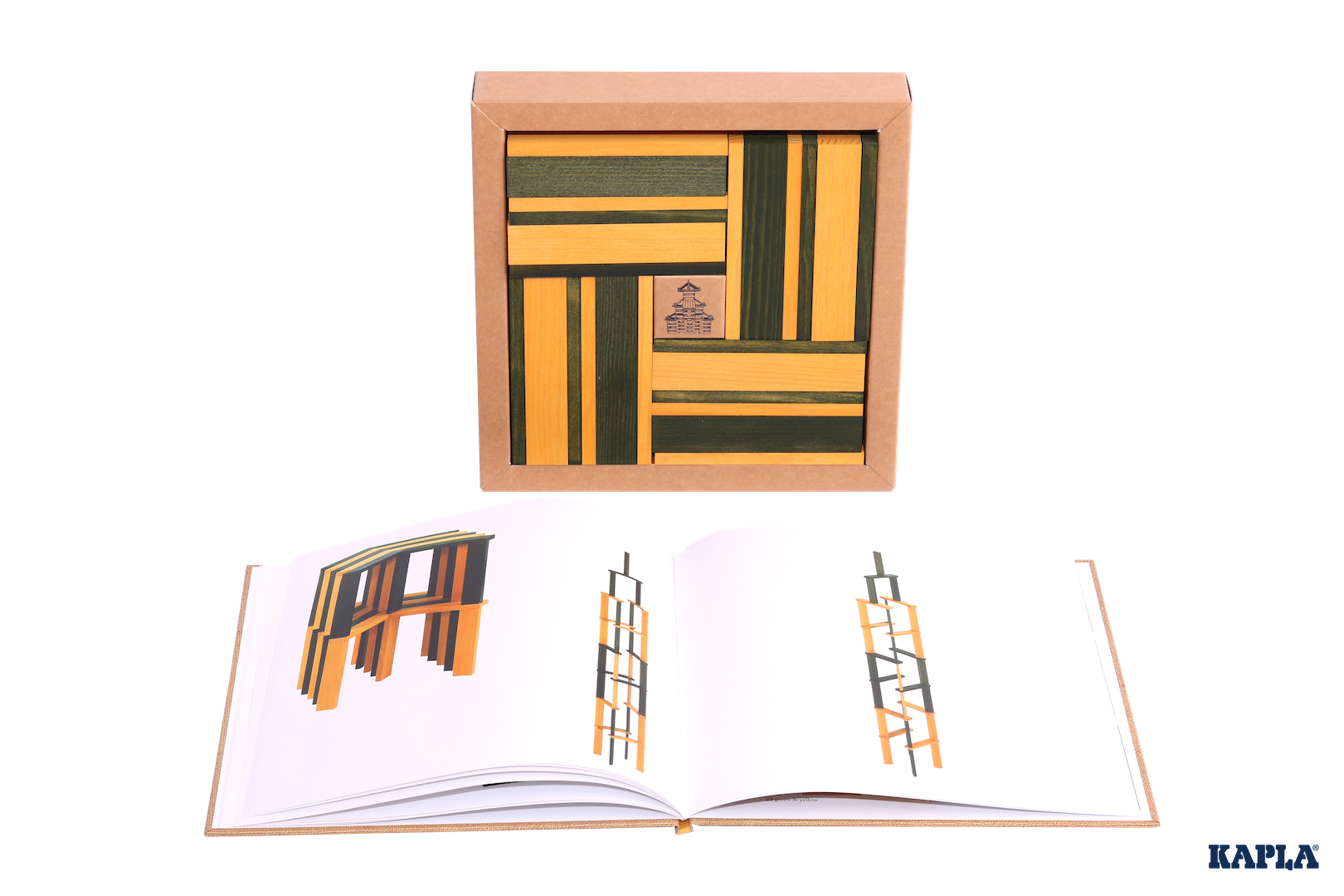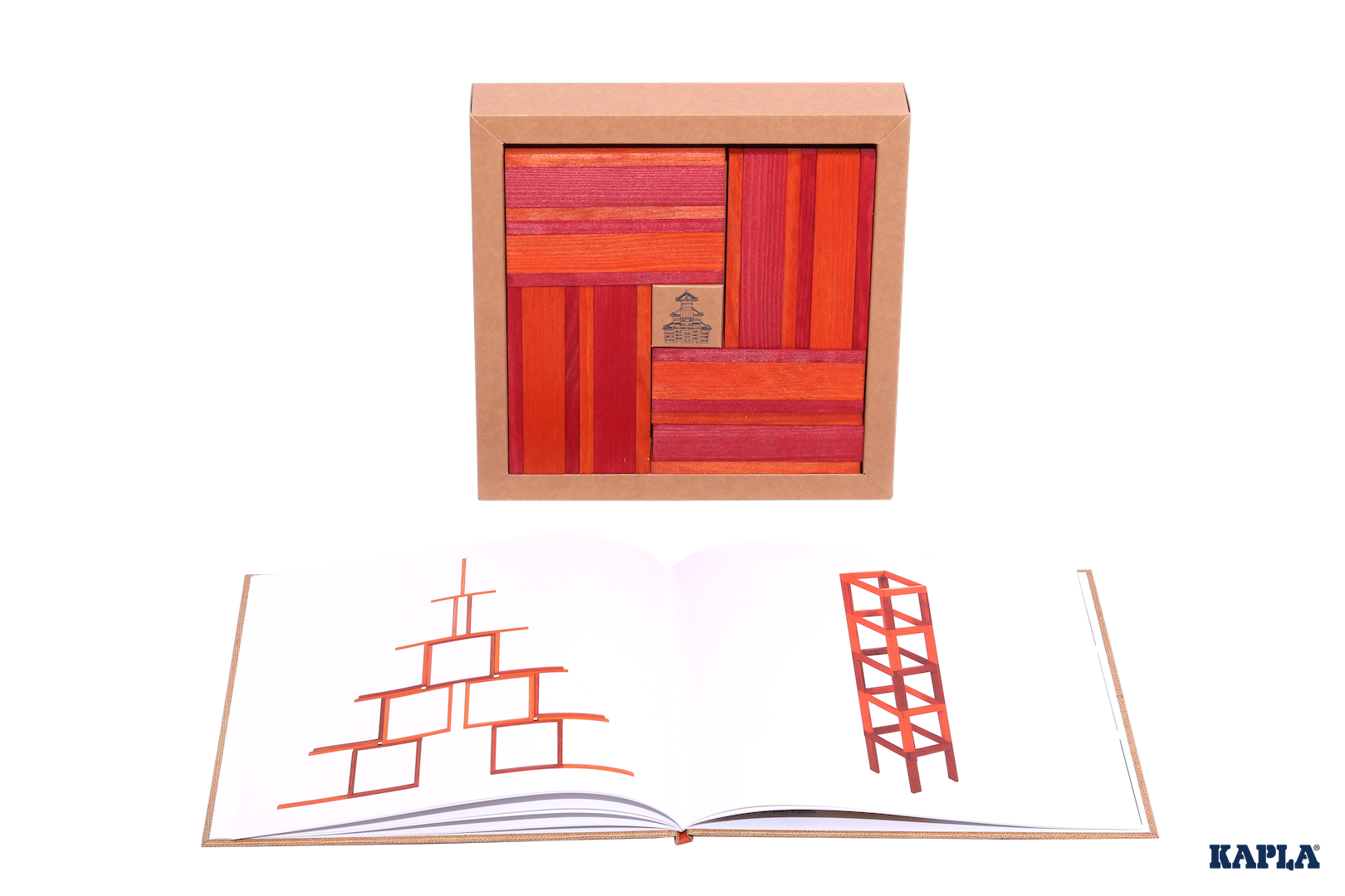 The planks are painted with natural pigment, their untreated natural wood texture provide adequate grip to optimize building. These Book and Colours sets are a great complement to the KAPLA natural planks to add a touch of contrasting tones to take your KAPLA creations to a new dimension!