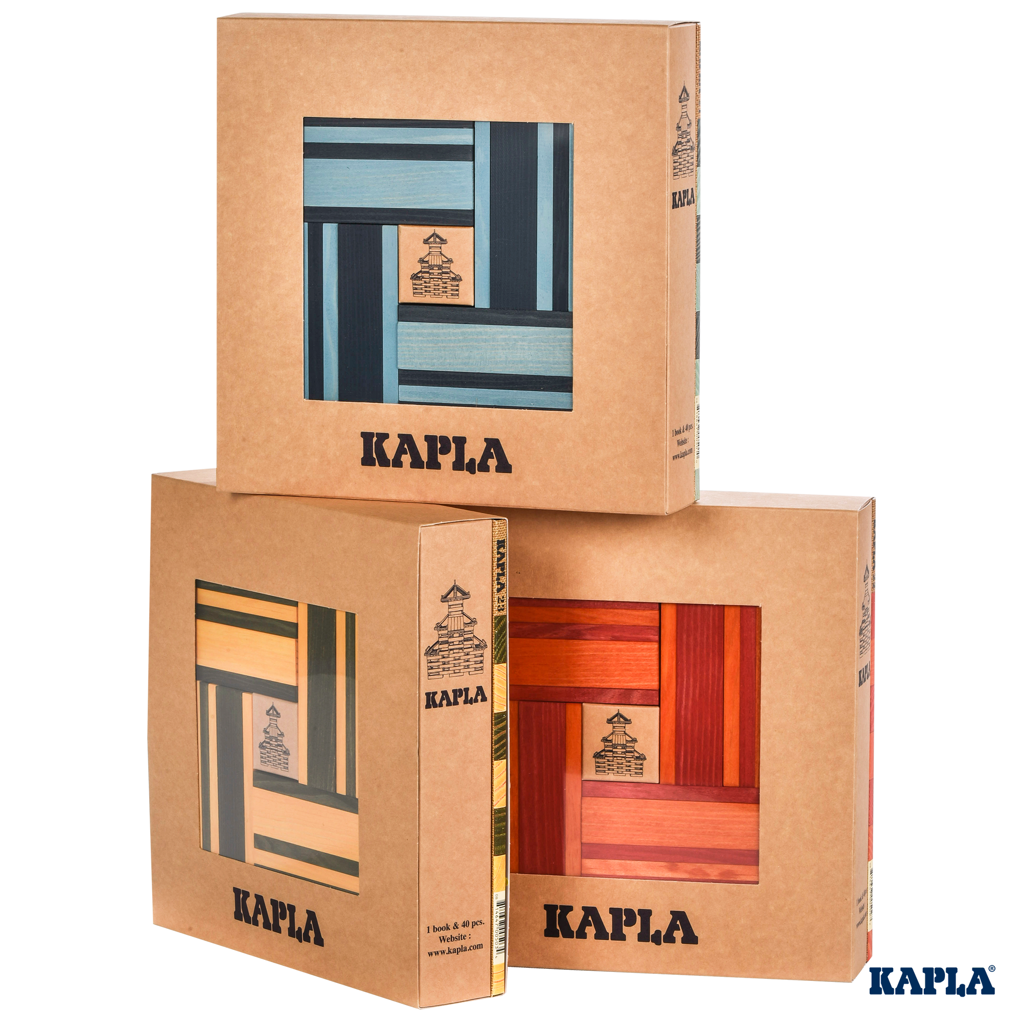 The KAPLA Book and Colours Set is ideal for starting or enhancing a collection of KAPLA. Each set includes 40 colored planks in 2 different colors, and an hard-cover art book with inspirations that are especially adapted to the colour theme of its set, the creations in the book of each set are different, all are designed to inspire a range of abilities and age groups.