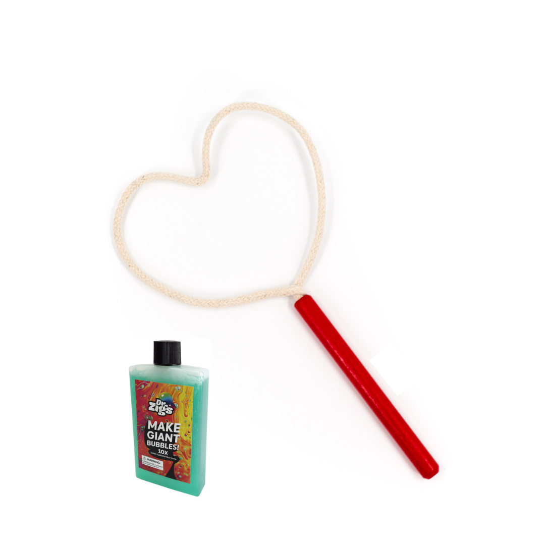 The bubble wand is handmade from sustainably sourced wood, flexible steel wire, and covered with 100% fair-trade natural untreated cotton with a special braid, designed to soak up as much bubble juice and release it slowly to create the most amazing bubbles. Everything is made ethically in North Wales of the U.K.