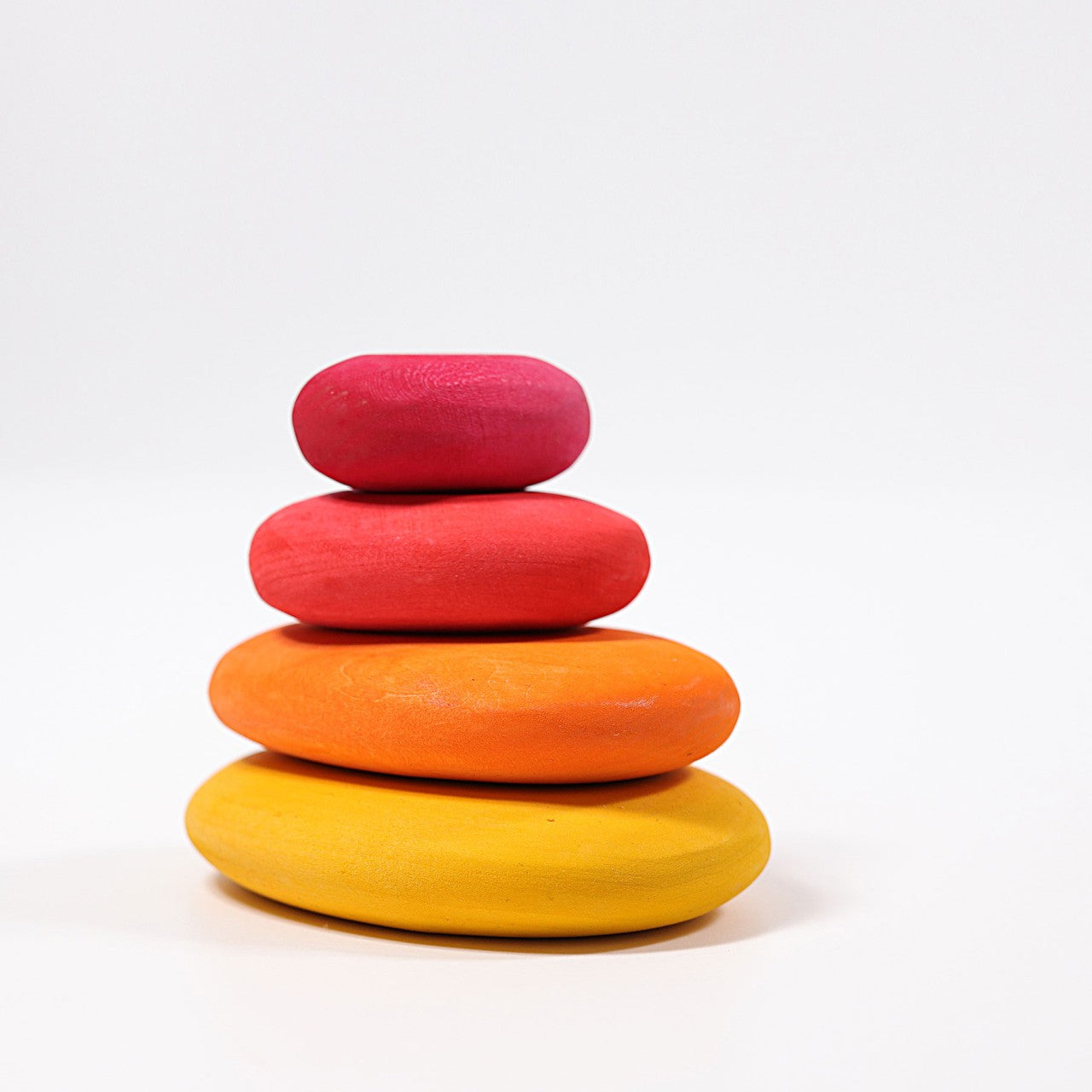 The Fire Pebble set contains 4 smooth wooden pieces in shades of red.