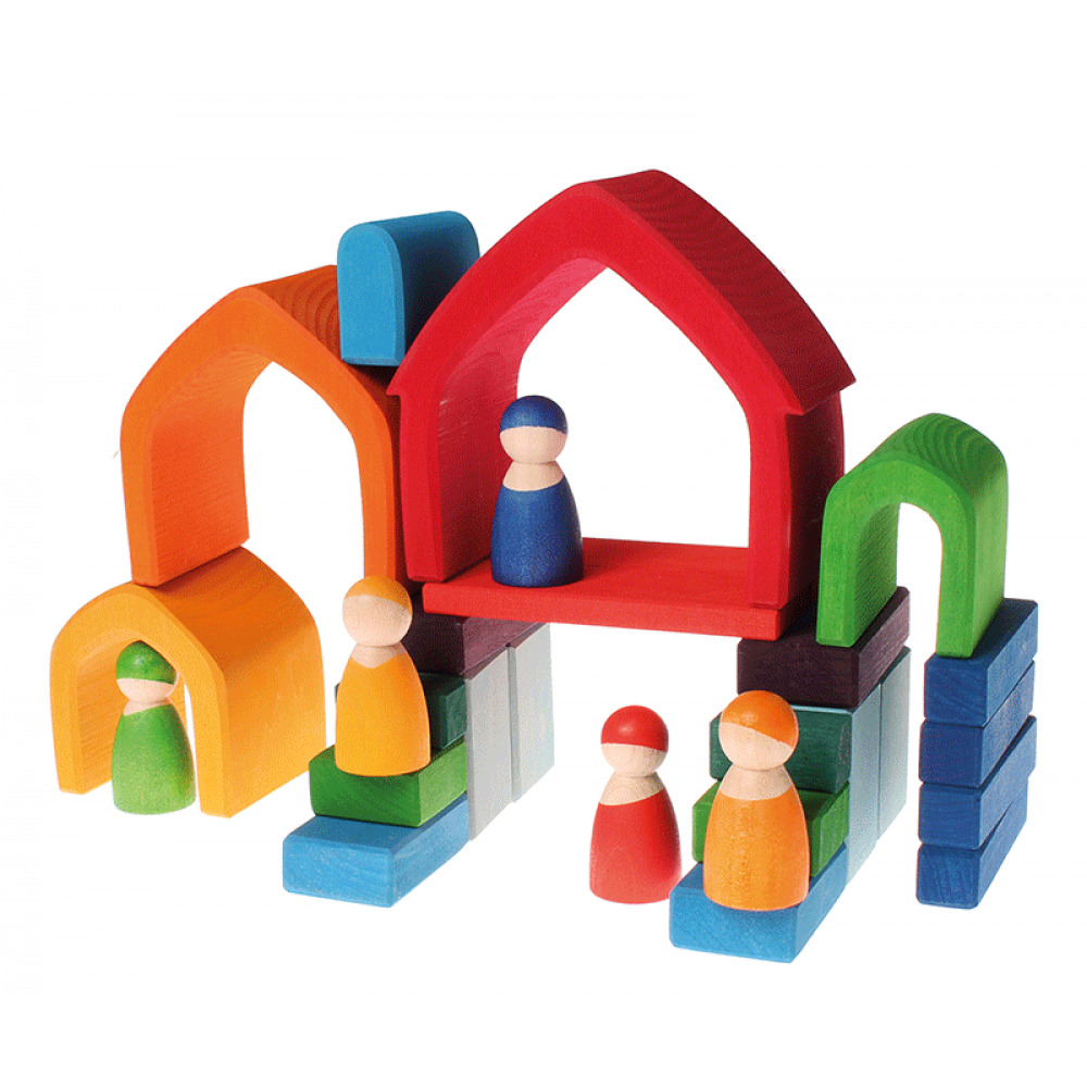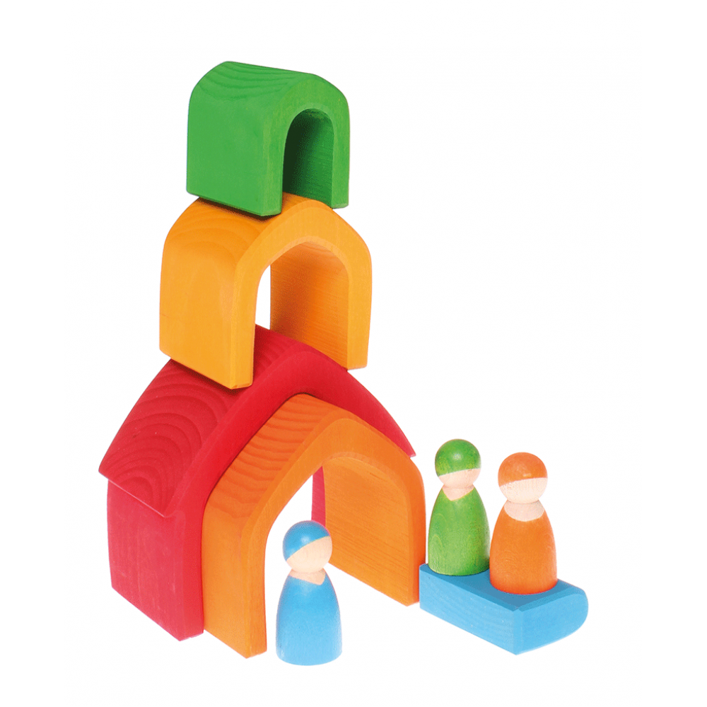 The Grimm's rainbow stacking house at Reverie Craft is versatile stacking toy as well as a lovely puzzle for toddlers. The simple house form is versatile enough for small children and preschoolers to stack, sort and build. As the child’s imagination develops this colourful wooden house can be used in imaginary play, a fence for animals, a tunnel for vehicles, a house or it can be used to build amazing sculptures… this toy will always have the ability to be integrated into building and imaginary play.