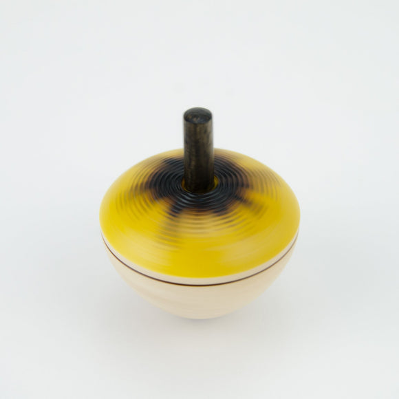 This hand-turned spinning top with beautiful hand-painted yellow and black colour is a tactile toy with smooth finish and perfectly sized for little hands to hold and spin, it is also great for children to practicing their fine-motor skills.