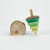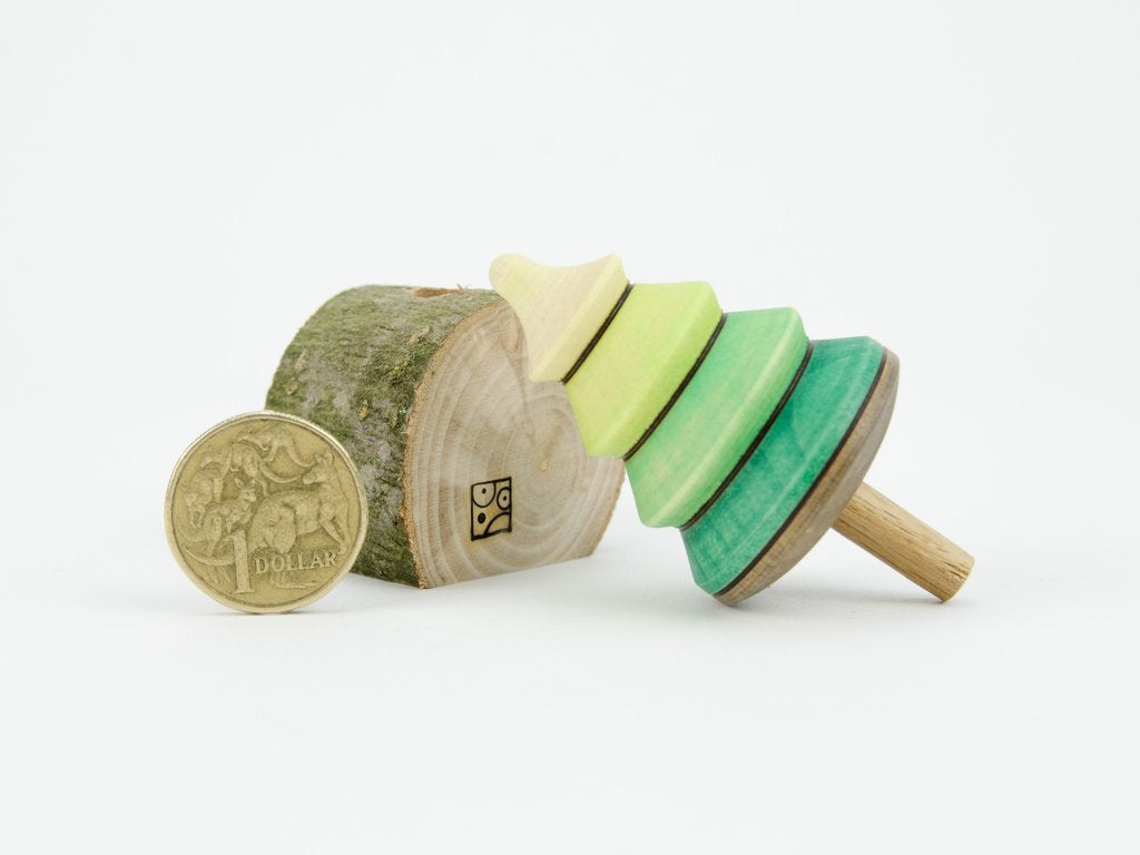 This hand-turned spinning top with beautiful hand-painted natural colour is a tactile toy that delights both children and adults.
