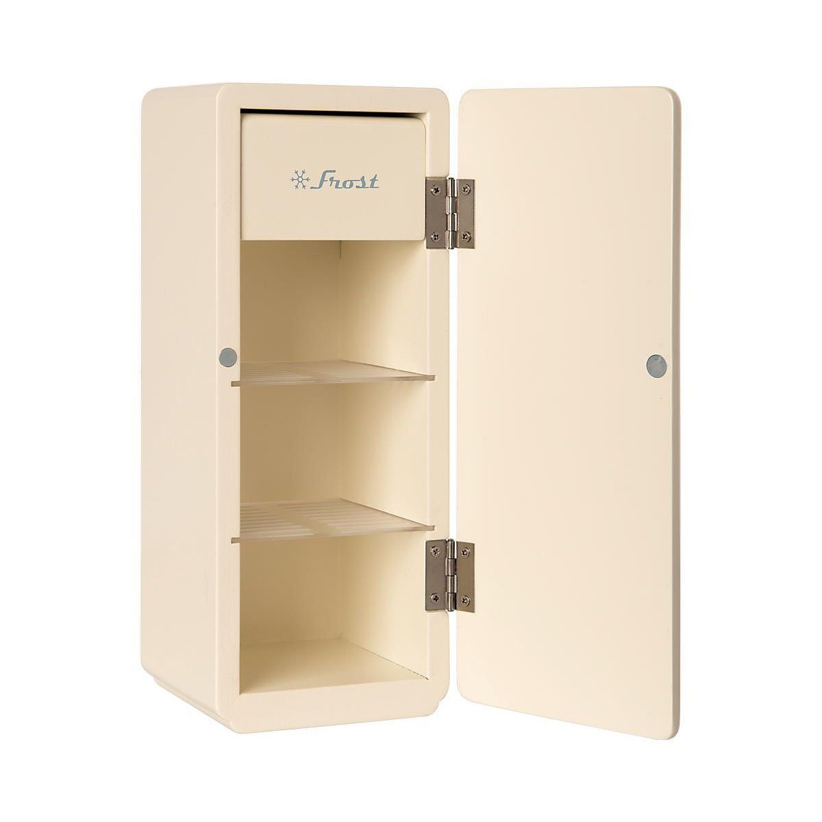 An old fashioned cooler that fits perfectly into the miniature doll house. Made of wood with magnetic lock, metal hinge, and a frosted compartment inside.