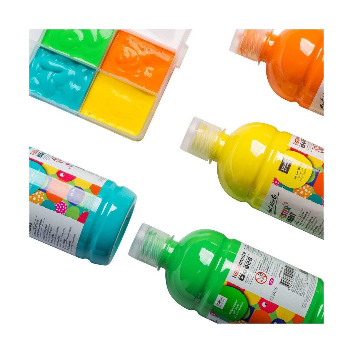 Mont Marte's quality, washable, non-toxic poster paint is fabulous for children to explore colours and create different arts and crafts projects with.